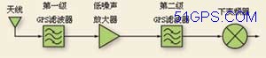 圖1 在單天線三頻手機中,GPS接收鏈的常見形式